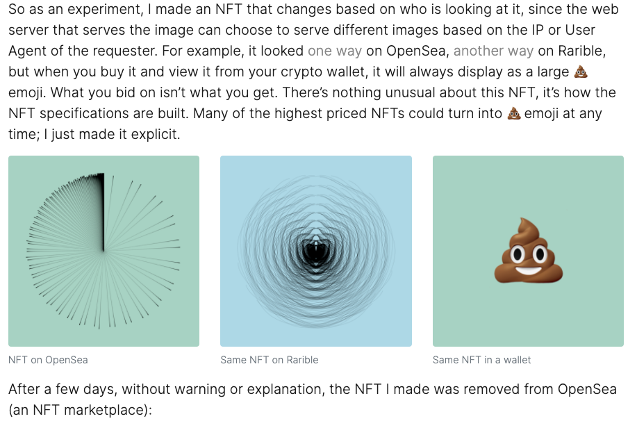 Autonomous Art, which "lets anyone mint a token for an NFT by making a visual contribution to it. The cost of making a visual contribution increases over time, and the funds a contributor pays to mint are distributed to all previous artists (visualizing this financial structure would resemble something similar to a pyramid shape)."