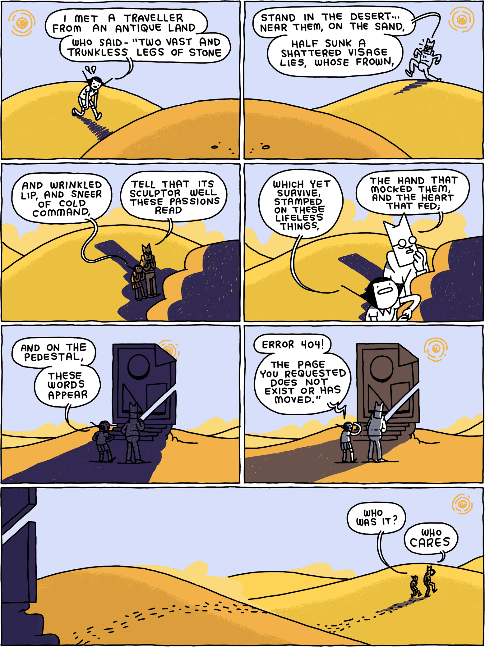 "In Egypt's sandy silence, all alone, / Stands a gigantic Leg..." 😆