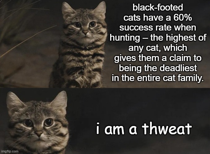 The first photo is captioned "black-footed cats have a 60% success rate when hunting - the highest of any cat, which gives them a claim to being the deadliest in the entire cat family."