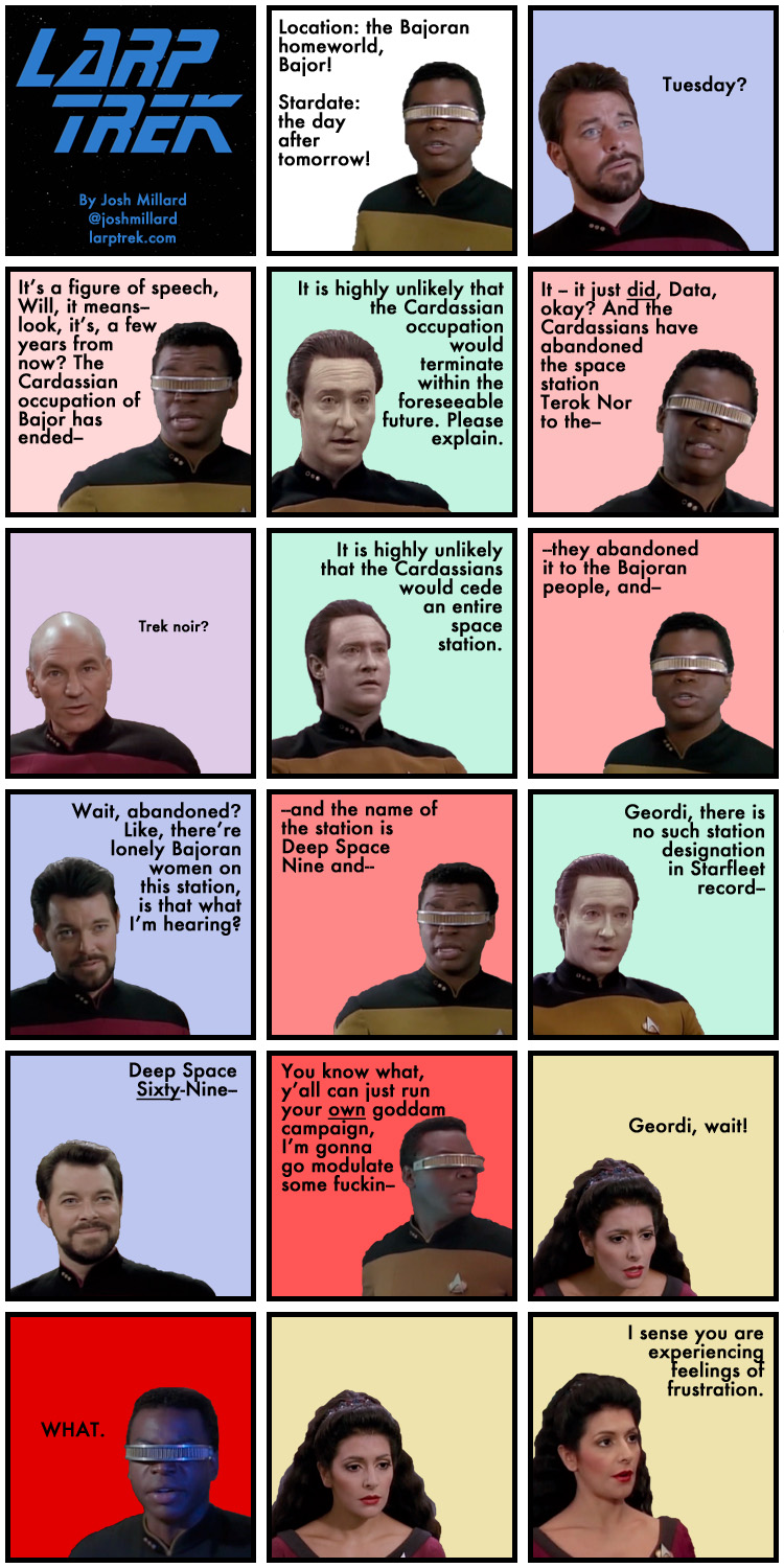@joshmillard I'm supposed to be working but instead I just read through the Lark Trek archives: every one of them is brilliant. Really well done!