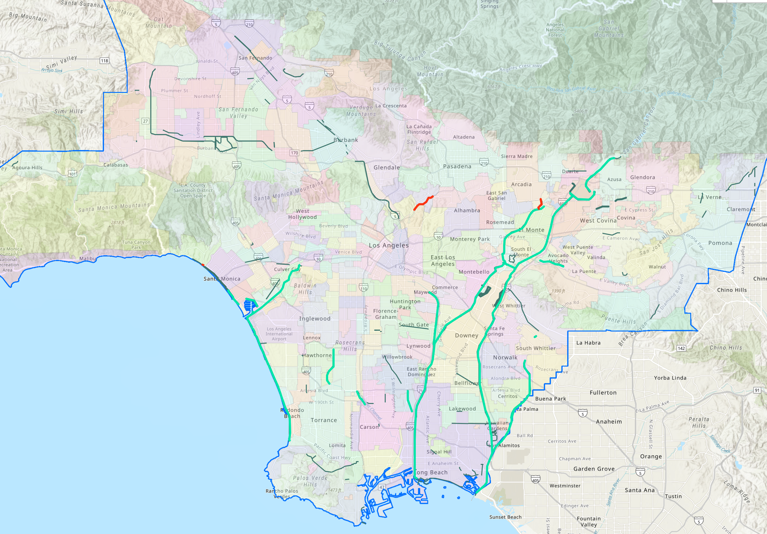 A way back in the day rode from Sierra Madre to Long Beach and back via the path along the San Gabriel River/605 Freeway. Brutal. Mostly flat, but concrete and asphalt all around and fully exposed.