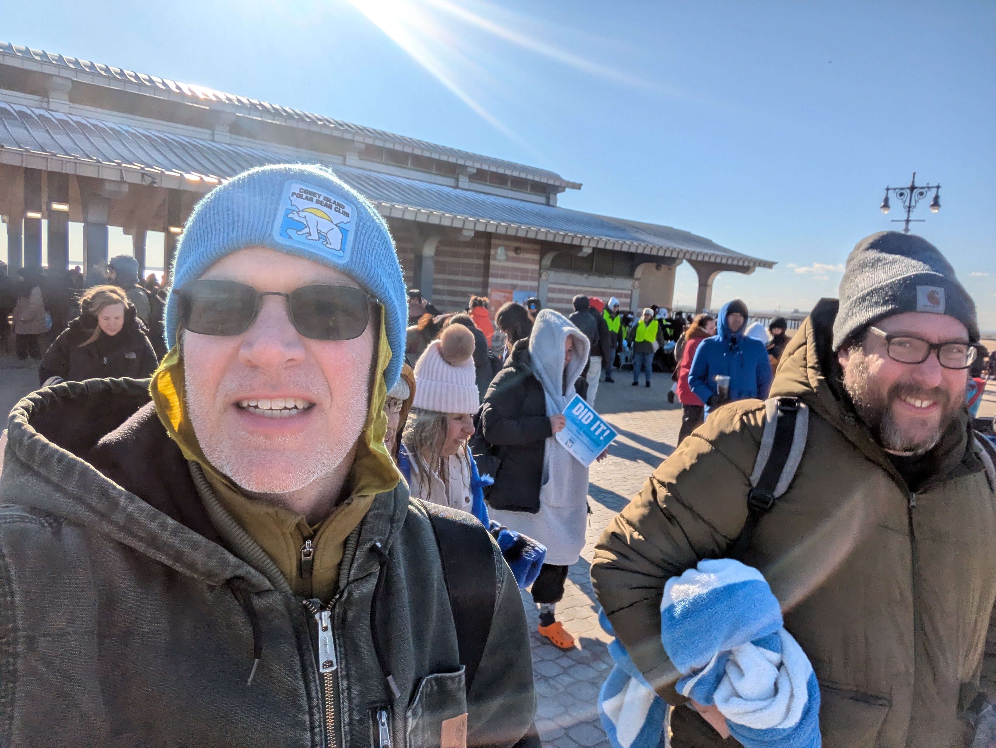 Went to the Coney Island Polar Bear Plunge with my friend Howard again this year. Much colder than the last few years we've gone — mid 20s and super windy. Took a long time for my toes to wake back up, but still hella fun.