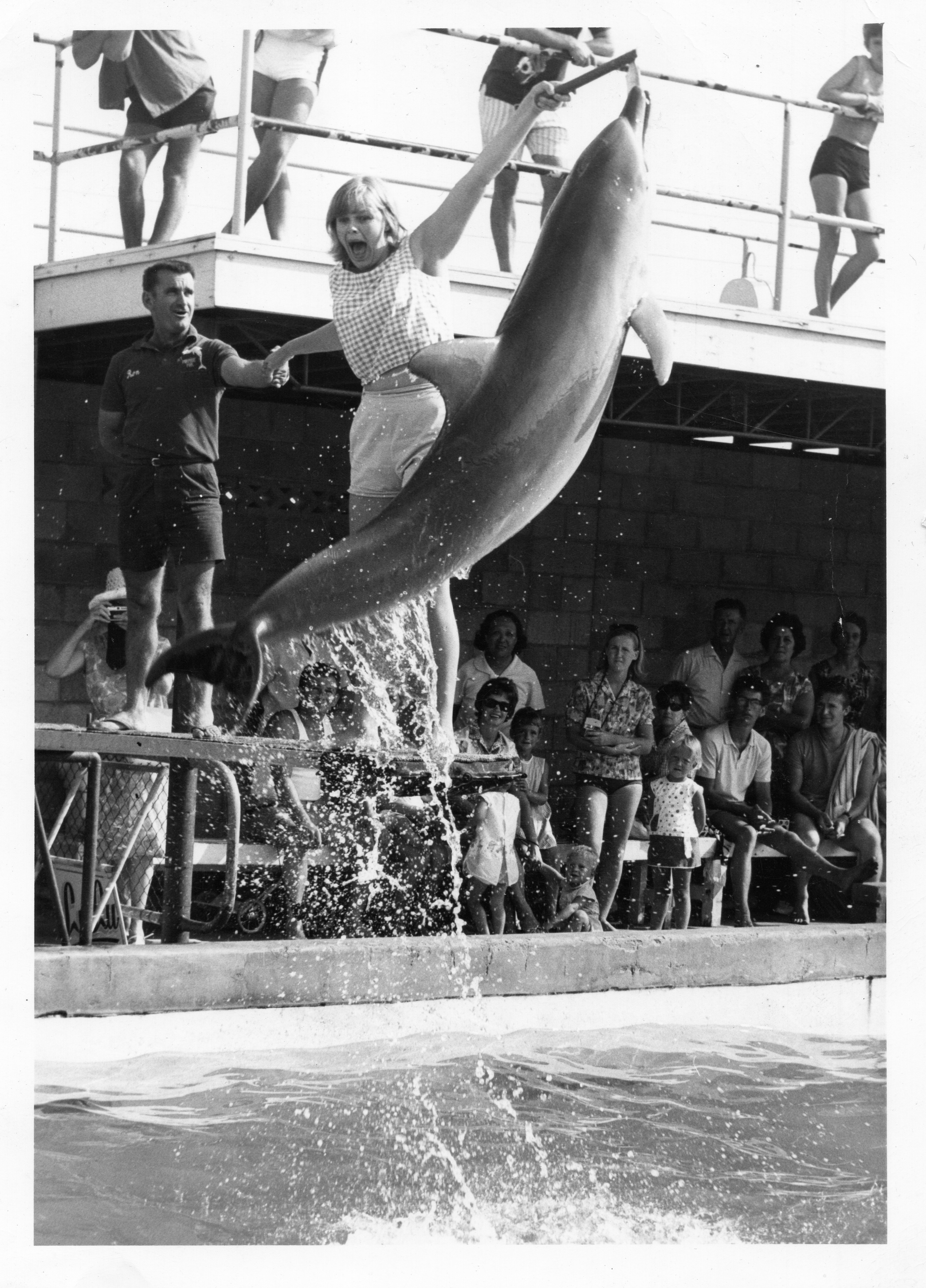 I've spent some time this week scanning old photos and loading them to Flickr. I thought I'd share this one of my Dutch stepmother feeding a dolphin at the Jack Evans' Pet Porpoise Pool, or Dolphin Oceanarium, at the Snapper Rocks Sea Baths in Coolangatta, Queensland in 1965. (Queenslanders on here likely know of this spot.)