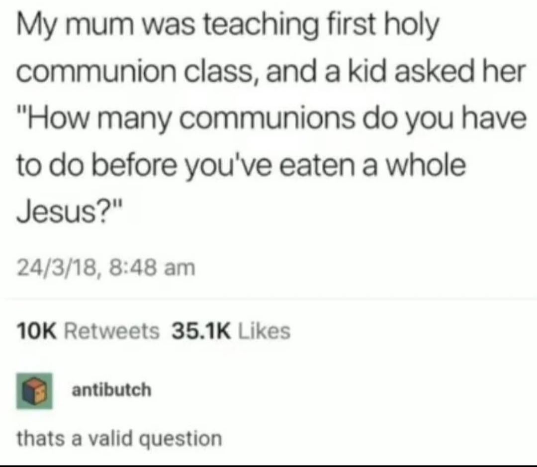 @joshmillard I like a communion, two at the most, three I'm under the alter...