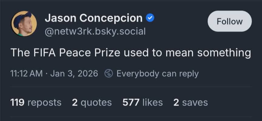“The FIFA peace prize used to mean something”