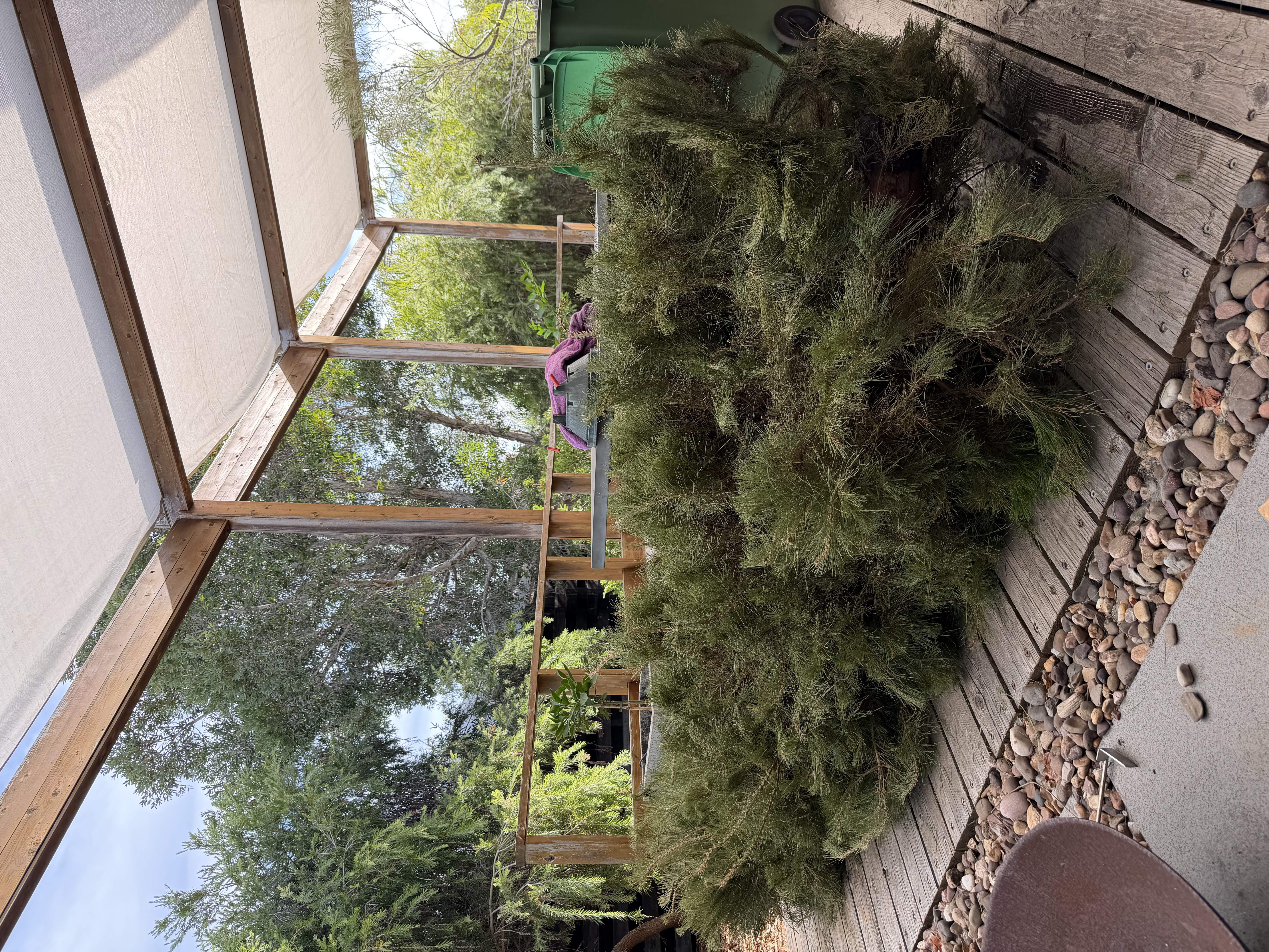 The tree is dead, dropping needles everywhere, so it was time. No way it was lasting another week.