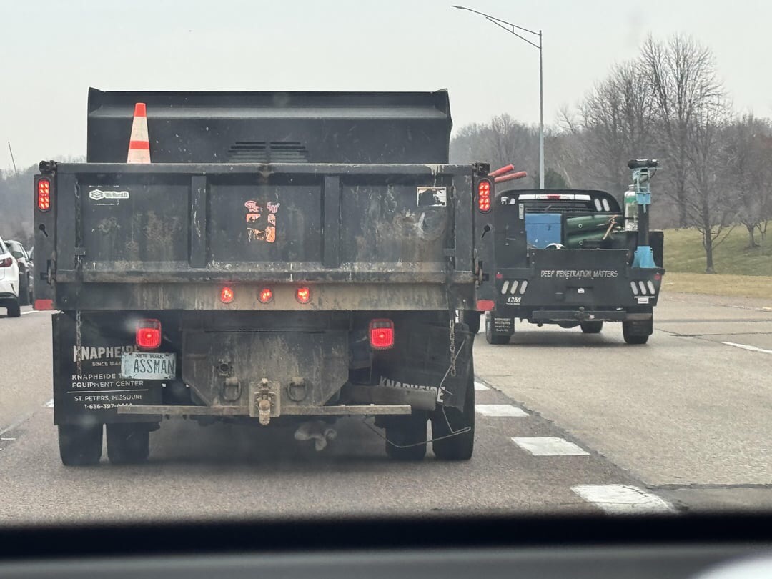 It's likely a fake plate due to a MO Statute: // Trucks with a GVWR of 12,000 pounds or higher are only required to have a front plate, under the assumption that the rear will be covered by something being towed. Note that the GVWR is the weight capacity of the vehicle, not the actual weight of the vehicle, so a truck still qualifies to only use one plate even if the owner never intends to pull a trailer. For reference, I think some of the more powerful models of F-250 might hit that GVWR, and all of the F-350s and F-450s do. //