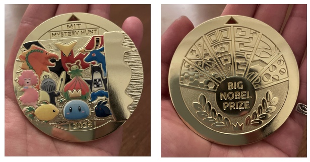 the coin from this year's MIT Mystery hunt has been found. Prescient of them to have it be the big nobel prize, fits right in with the news cycle.