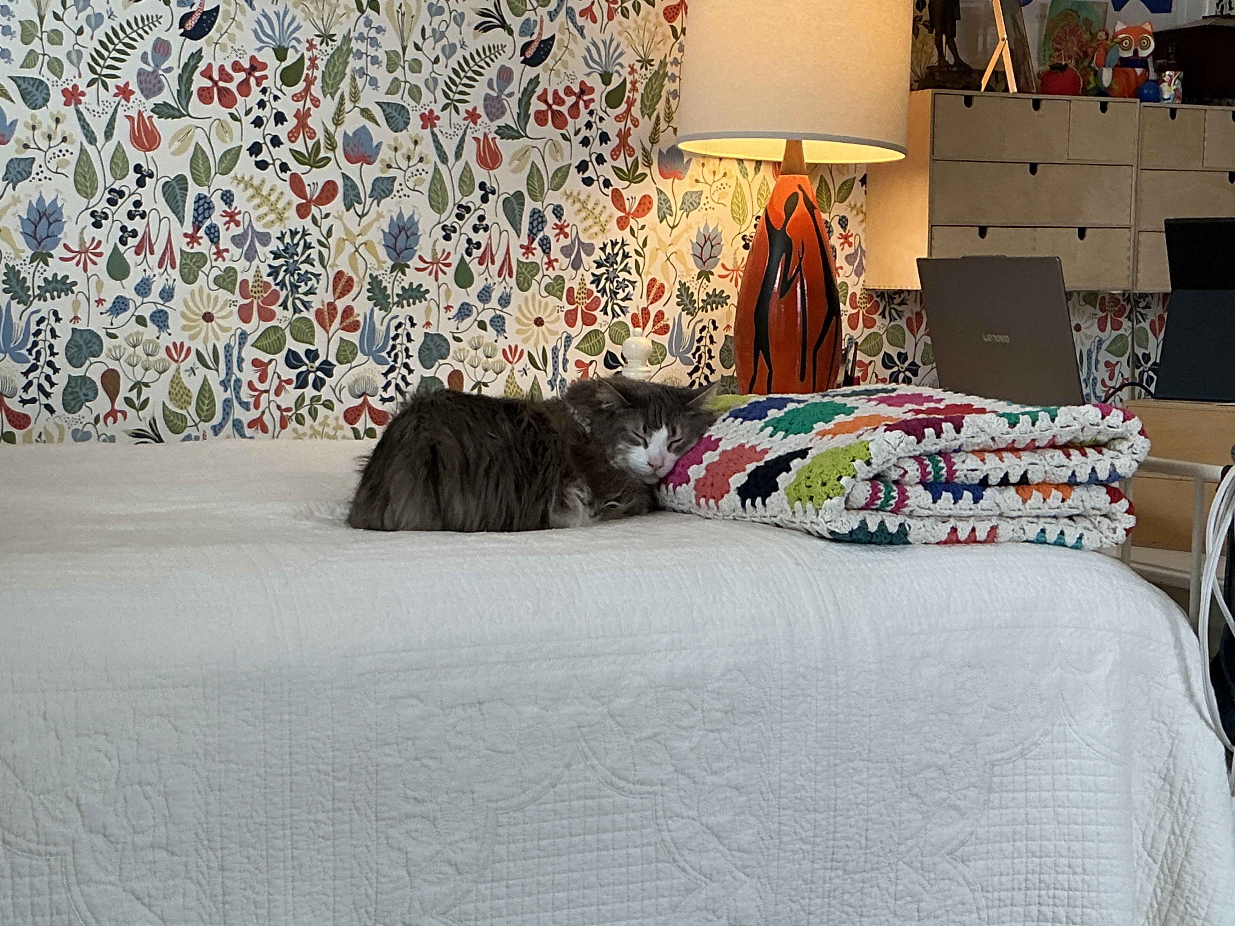 That has to look awesome with the wallpaper, and the afghan opened up.
