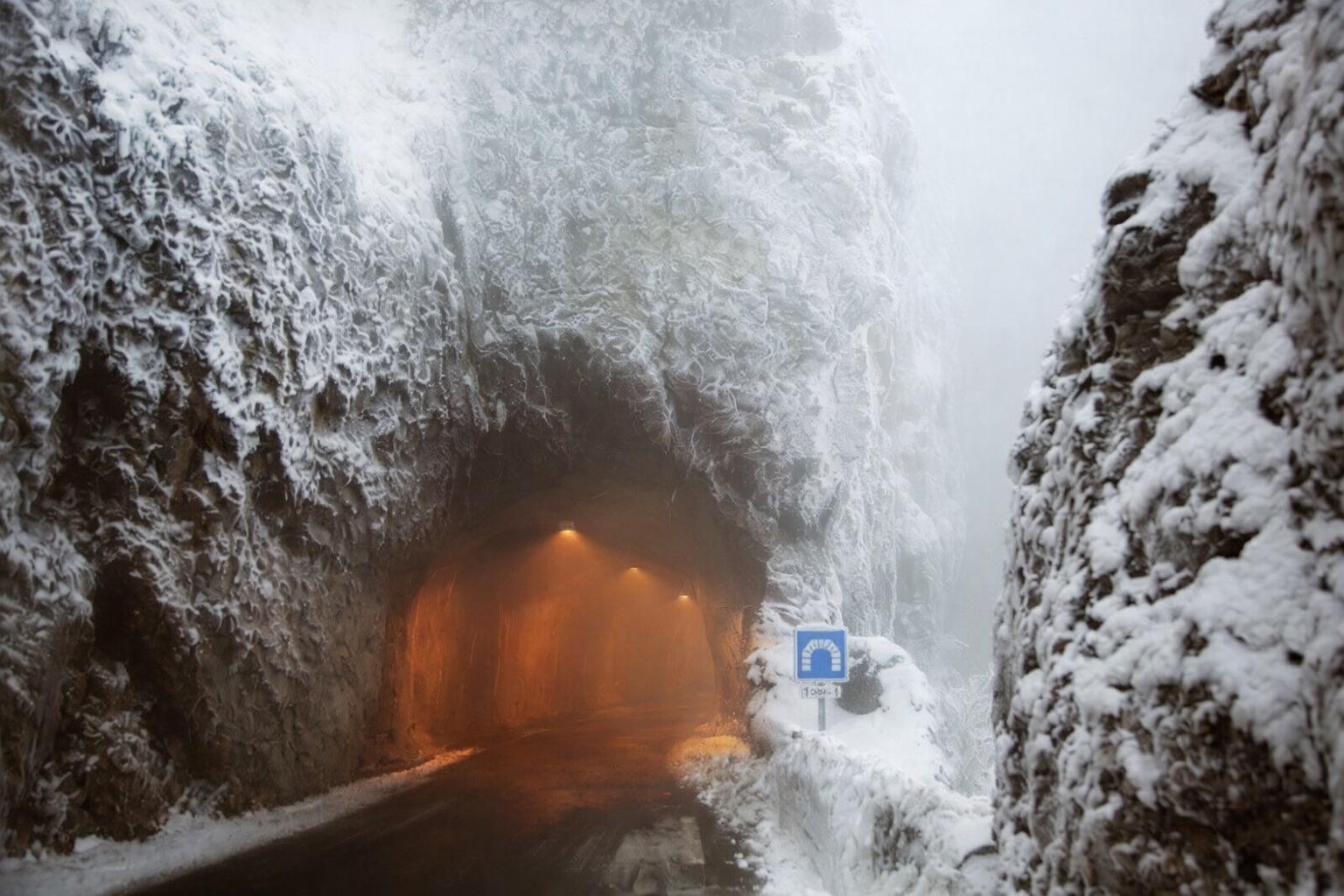 I have seen fog like that at its entrance, but never that much snow.