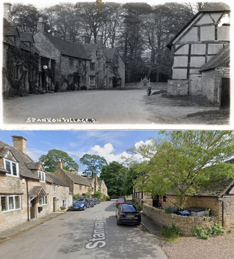I wasn't sure this one would work, as in would these buildings still be there. But this being England the odds are good and there ya go. Stanway Rd, Stanton, Broadway.