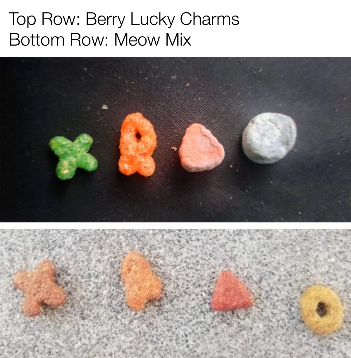 Even more fun when you realize the cat food has far more nutritional value.