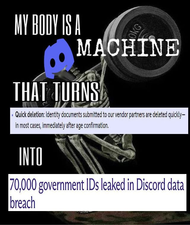 MY BODY IS A MACHINE meme edited to be about Discord.