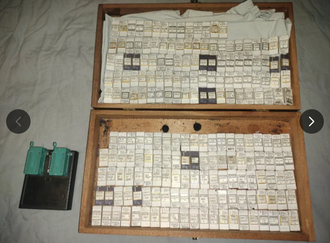 Grr. I had a description of this and it went bye-bye. I saw this post on the r/atari2600 subreddit. Someone had going this beautiful custom box full of copied Atari 2600 ROMs from the 80s. I spent two years at National Semiconductor as a develop inspector. It was my job to stare into a microscope for 12 hours a day to make sure the dies were lined up and focused before the wafers went to acid etch. We made 64k EEPROMS. The odds of some of these being under my microscope are pretty high, and I couldn't be more proud!