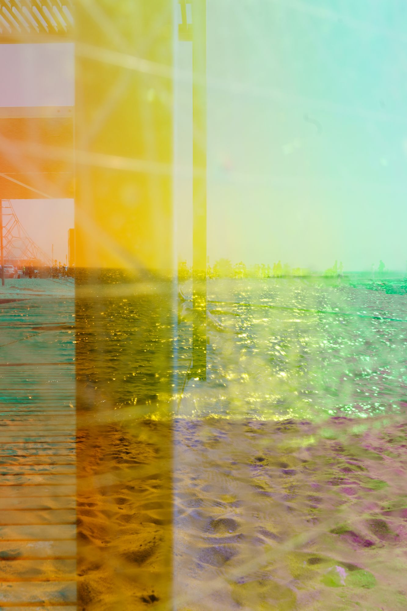 I was playing with it while they talked to some subjects and I shot this weird reflection/window overlay double exposure vibe. I really like how it shows the two sides of the coast between water and beach infrastructure.