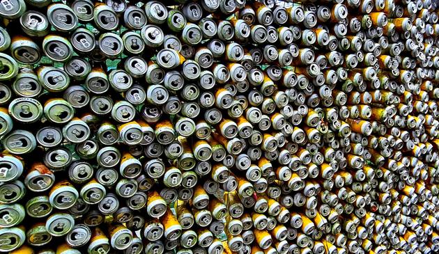 A wall of Tennent's Lager cans