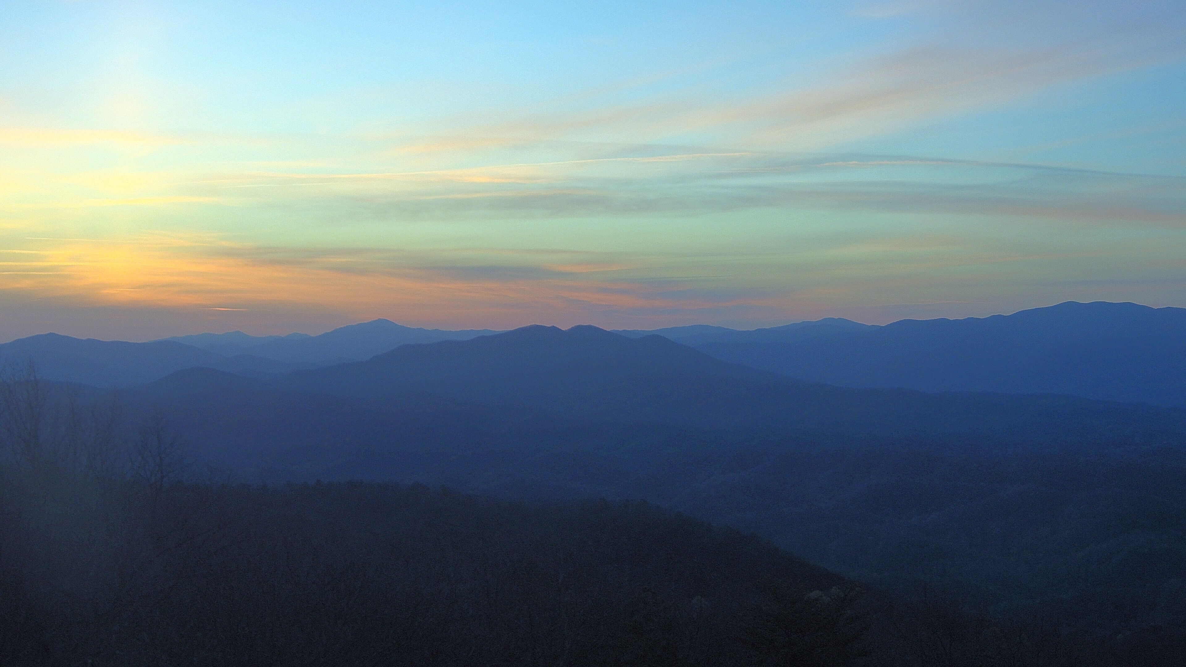 My desktop background auto-updates from a webcam on the Appalachian Trail in the Smokies. This morning was particularly beautiful.