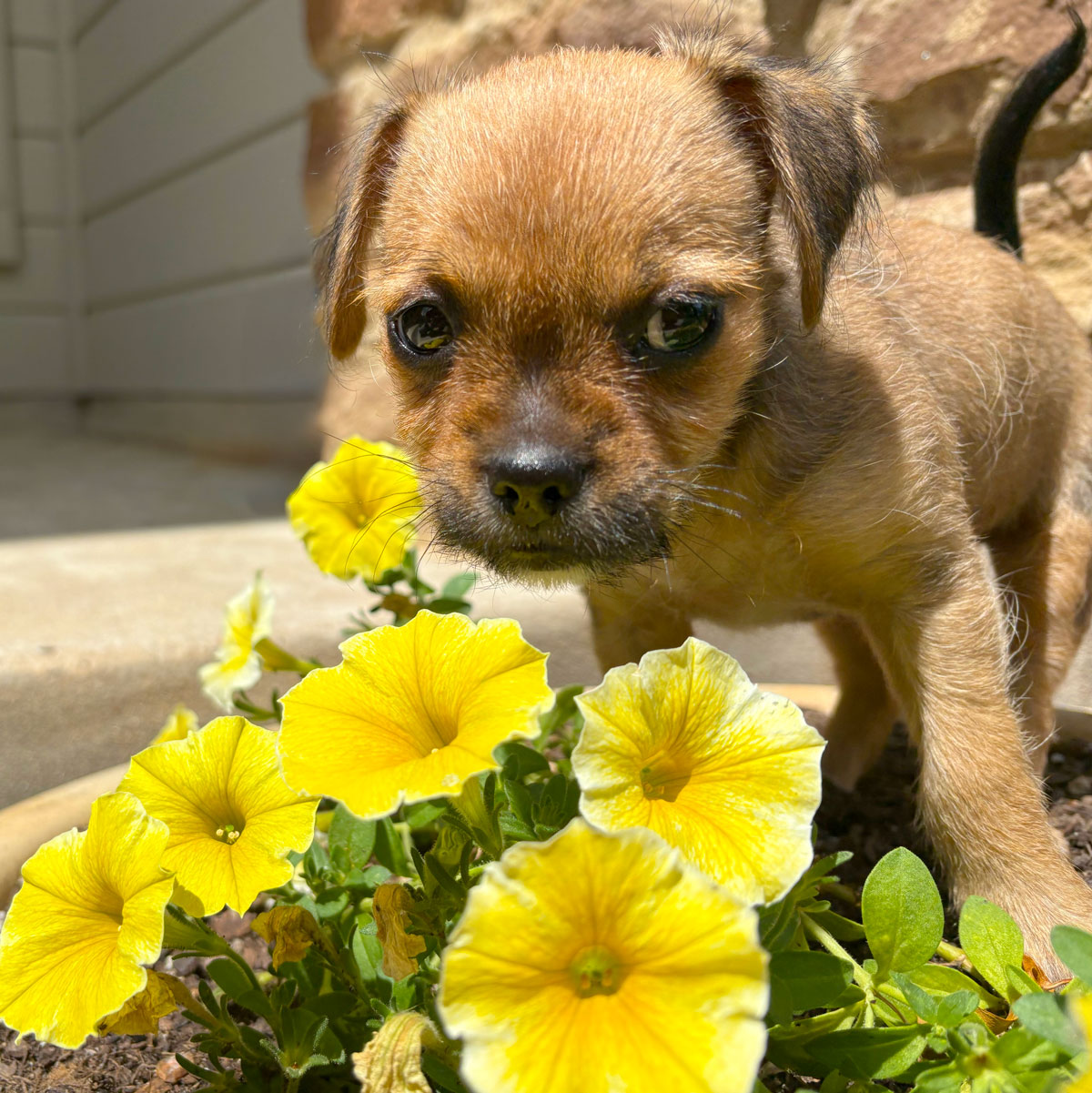 Introspective petunia loving pup, what kind is she?