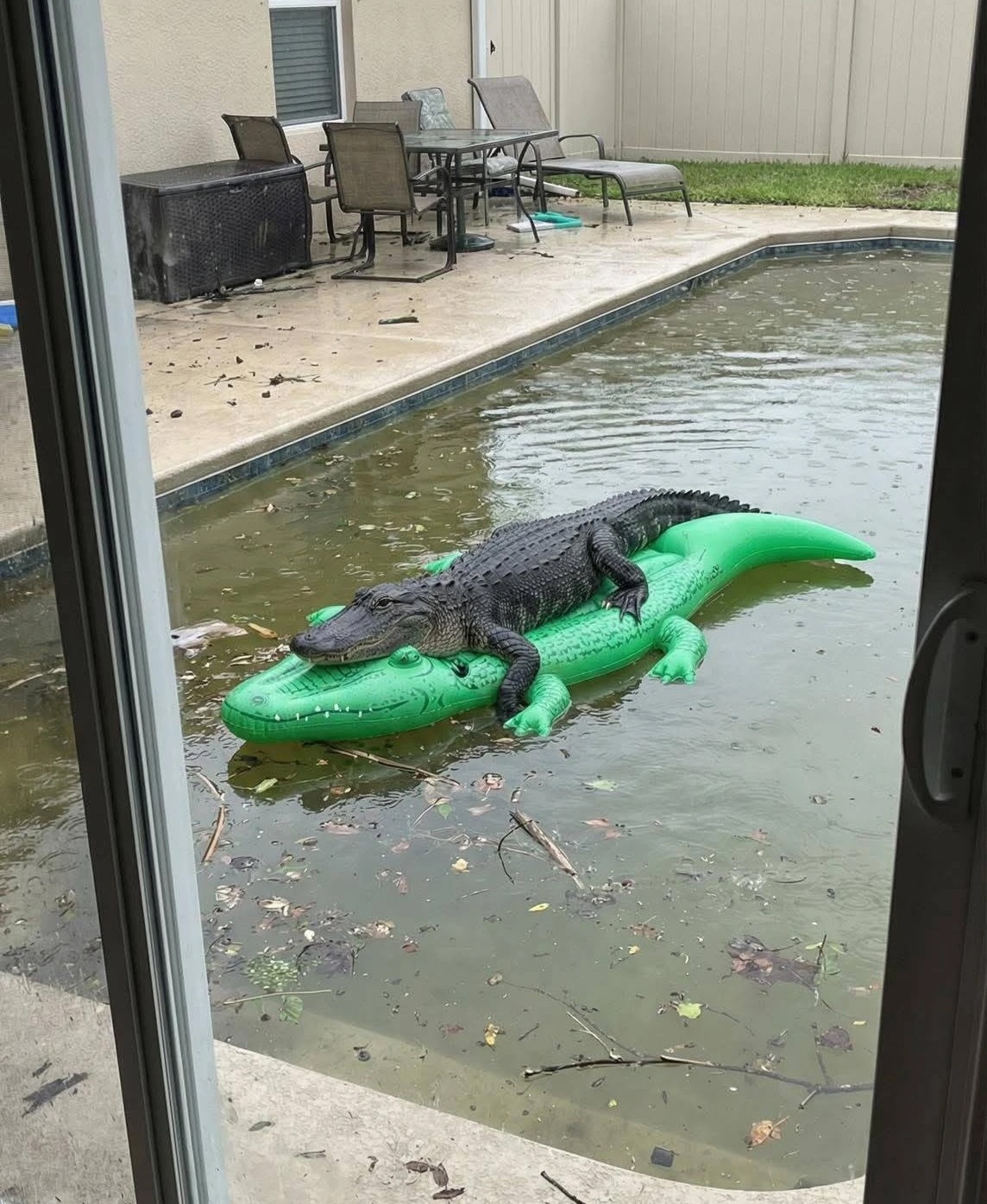 @bezt However, this is probably ML generated, and it's simulacra all the way down - the legs on the furniture in the background don't quite make sense. AI-ligator, not alligator. This does seem to have happened in 2019, though on a smaller scale. https://www.clickorlando.com/news...