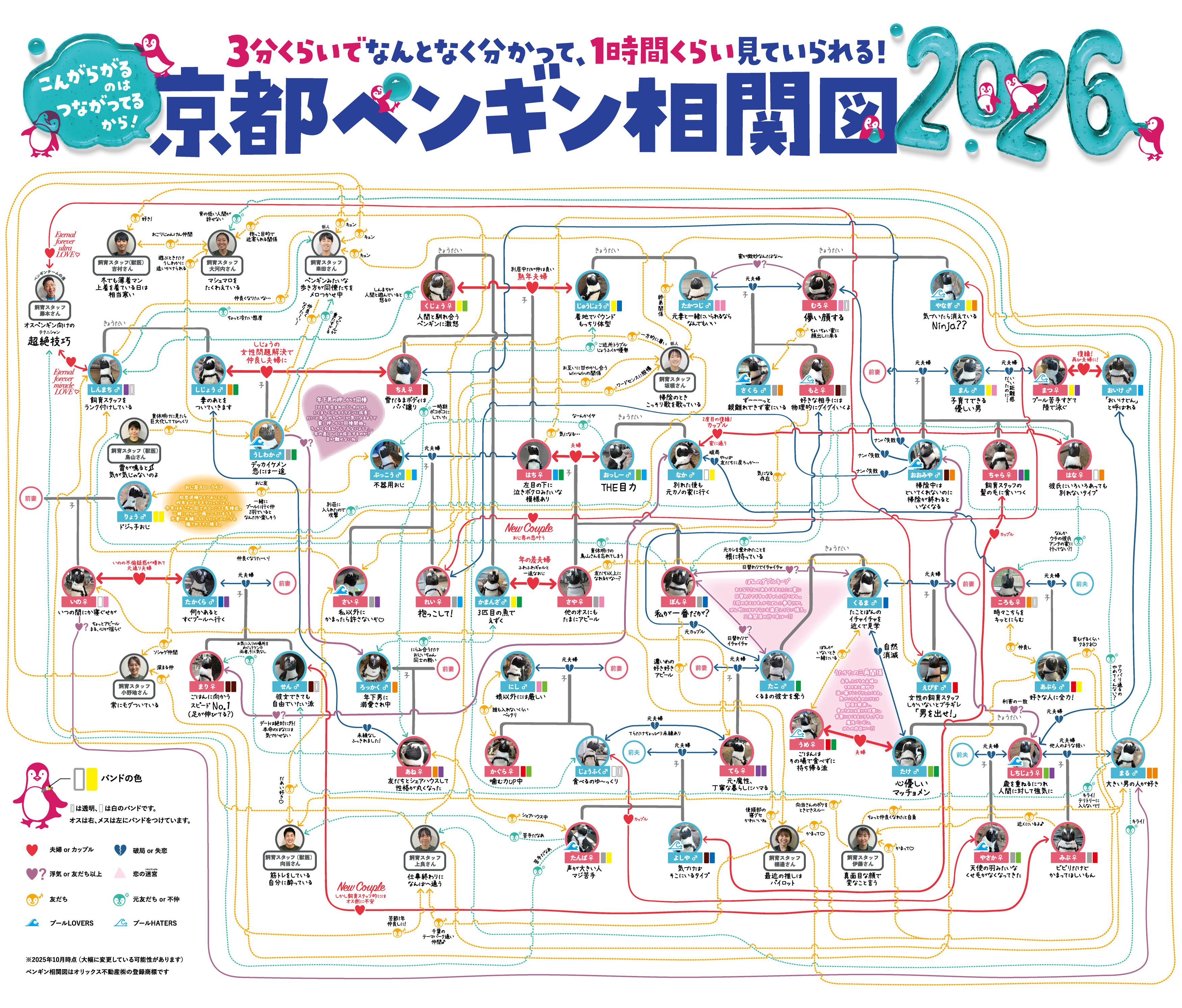 A chart in Japanese which shows the complicated relationships between penguins at the Kyoto aquarium