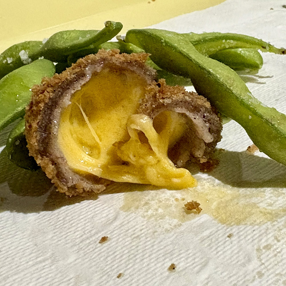 @0y3ahSansAcut3 Totally deep fried and served hot in a paper bag. That cheese stretched a good foot and a half after we first cracked one open.